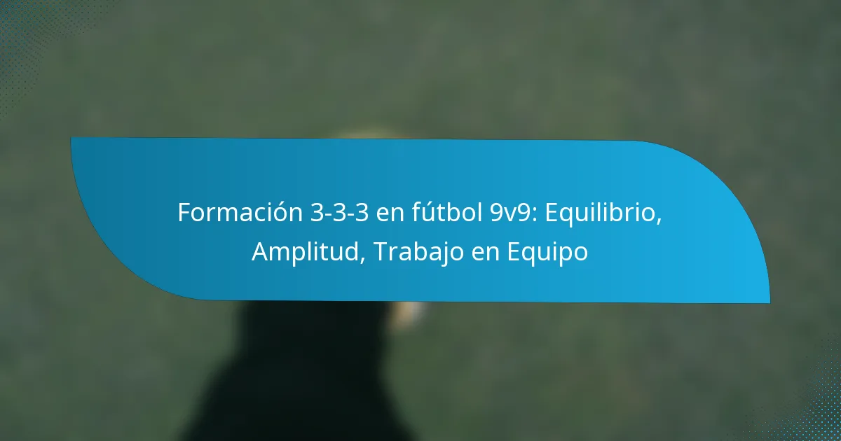 La formación 3-3-3 en el fútbol 9v9 es una disposición táctica que cuenta con tres defensores, tres mediocampistas y tres delanteros. Esta formación enfatiza el equilibrio, la amplitud y el trabajo en equipo, permitiendo a los equipos mantener solidez defensiva mientras apoyan las jugadas de ataque.