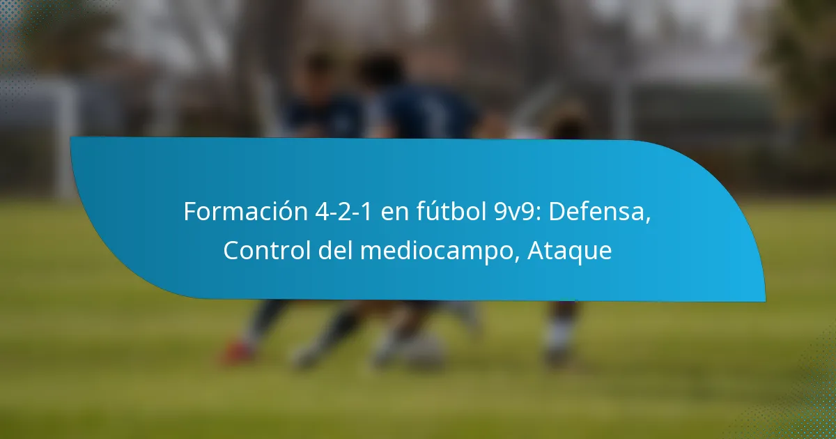 La formación 4-2-1 en el fútbol 9v9 es una disposición táctica que enfatiza una sólida estructura defensiva mientras permite un control efectivo del mediocampo y oportunidades de ataque. Esta formación consiste en cuatro defensores, dos mediocampistas centrales y un delantero, proporcionando un equilibrio entre defensa y ataque.